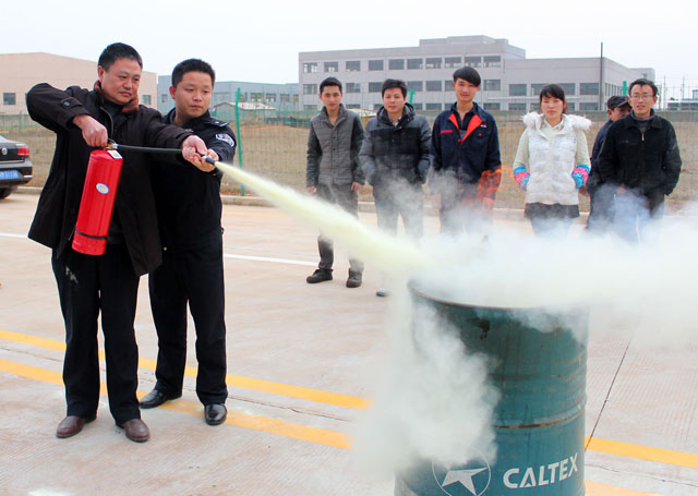 宣讲会后,员工们在民警的示范、指导下,拿起灭火器,进行了消防模拟训练,从实战的角度得到了消防能力的培养。